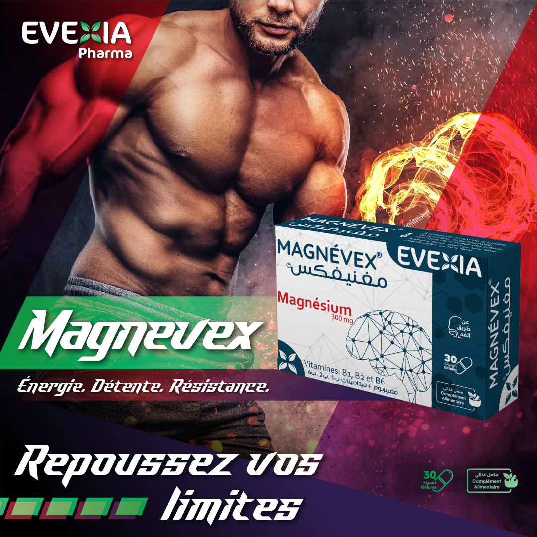 MAGNÉVEX est un complément alimentaire spécialement formulé pour apporter une dose optimale de magnésium associé aux vitamines du groupe B. Cette synergie favorise le bon fonctionnement du système nerveux, contribue à réduire la fatigue et encourage la détente. Grâce à cette combinaison unique, MAGNéVEX® devient un allié précieux pour maintenir un équilibre essentiel à notre bien-être.