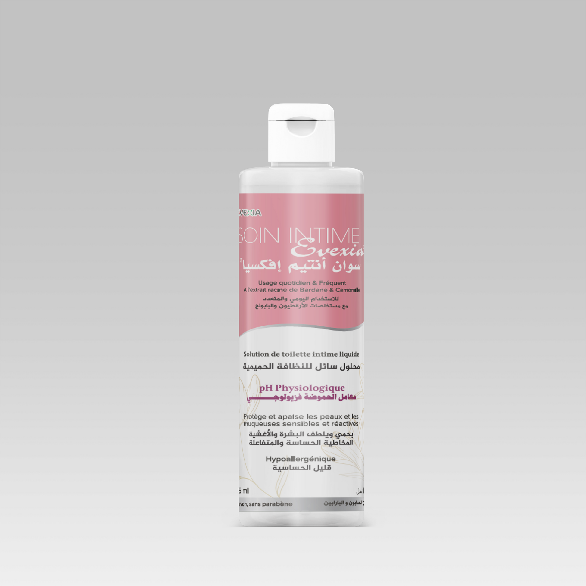 SOIN INTIME EVEXIA® Solution de toilette intime liquide (pH Physiologique) est hypoallergénique et spécialement formulé sans colorant pour une tolérance optimale. Sa base lavante douce sans savon vous assure une hyglène optimale tout en respectant les peaux et les muqueuses sensibles et réactives.