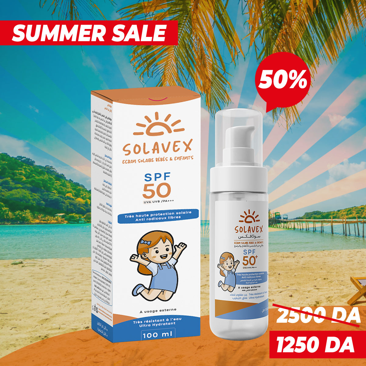 SOLAVEX est un écran solaire spécialement conçu pour les bébés et les enfants, sa formulation unique associe des ingrédients naturels à des filtres solaires, offrant ainsi une protection efficace contre les rayons UVA et UVB. Cette crème est essentielle pour prévenir les dommages cutanés à long terme, particulièrement chez les tout-petits dont la peau est délicate et plus sensible face aux agressions solaires.
